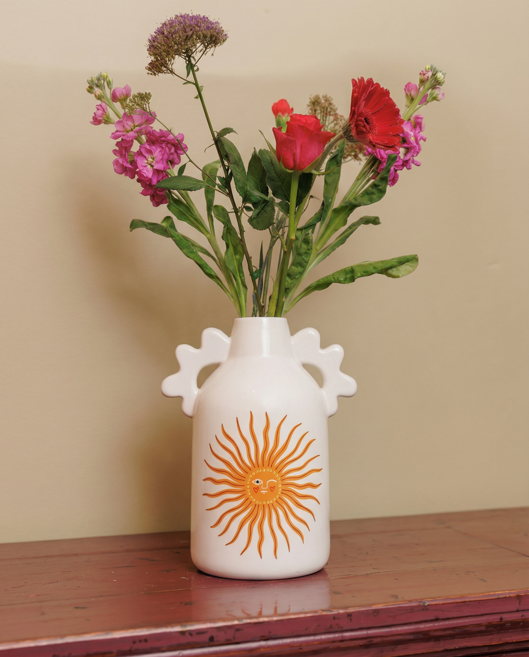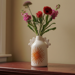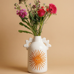 Bring light and warmth to your space with the Ceramic Sun Vase , a boho-inspired decorative piece made of high-quality ceramic and with a matte white finish, this 23cm vase is ideal for enhancing the beauty of dried or fresh flowers.