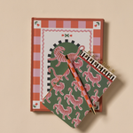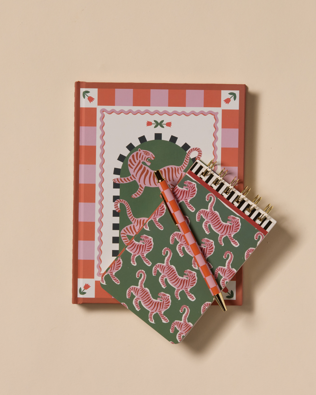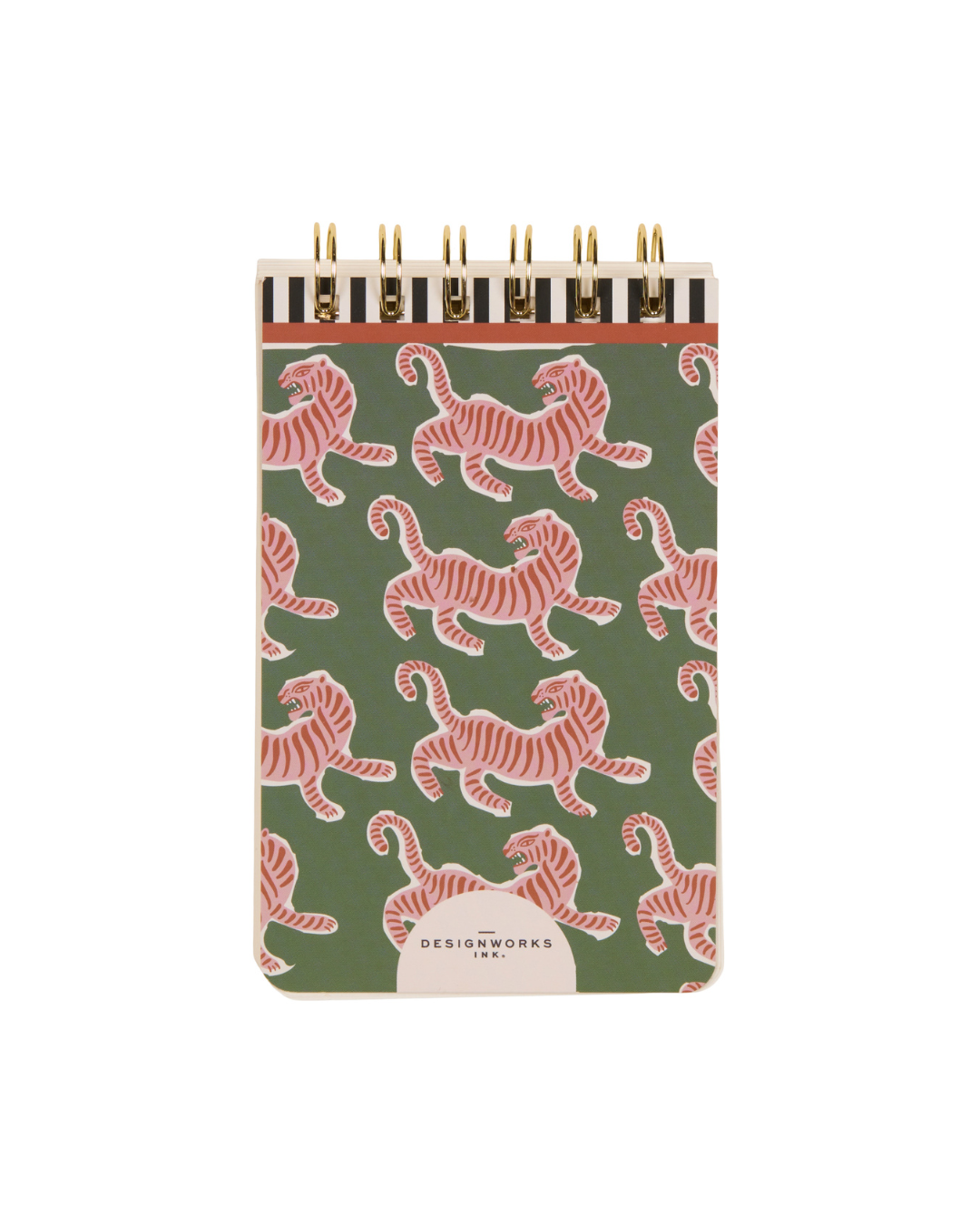 Bloc de notas con estampado de tigres rosas y ondas multicolor. Diseño original y divertido con 80 hojas rayadas, papel sin ácido 100 g e impresión con tinta de soja ecológica.