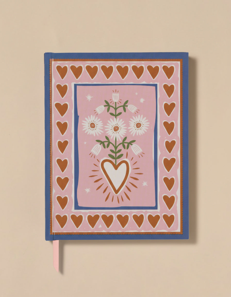 Este con su portada decorada con corazones y flores en tonos rosa, terracota y azul, es ideal para quienes aman los detalles románticos y el diseño nostálgico.