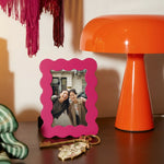 Marco de fotos de diseño de ondas en color azul. Fabricado con materiales de calidad, combina estilo y funcionalidad para decorar cualquier rincón de tu hogar u oficina. Perfecto para fotos familiares, artísticas o como regalo original.