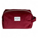 El neceser mediano de terciopelo granate de De La Mur combina funcionalidad y elegancia artesanal. Confeccionado con tejido grueso tapicero nacional, destaca por su acabado aterciopelado y color granate intenso, que aporta un toque sofisticado y cálido.