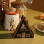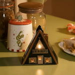 Coloca un cono de incienso o una vela de té en su interior y deja que el humo salga por la chimenea mientras la luz se asoma por las ventanas. Crea un ambiente cálido, relajante y decorativo en cualquier rincón de tu casa.
