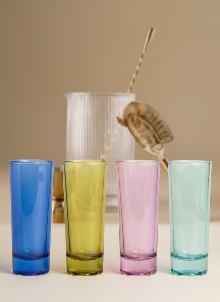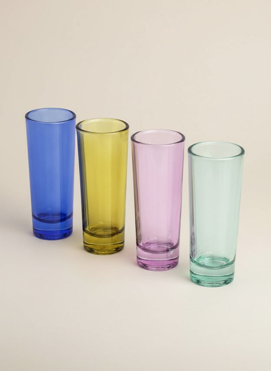 Dale un toque divertido y sofisticado a tu próxima fiesta con los vasos de chupito Gracie. Este set incluye cuatro vasos de vidrio en tonos pastel —azul, rosa, verde menta y azul claro— que aportan color y estilo a cualquier ocasión.